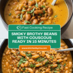 A quick and flavorful 15-minute smoky brothy beans recipe featuring tender pearl couscous, white beans, and aromatic spices simmered in a rich broth. This comforting dish combines the smokiness of paprika with fresh herbs and a touch of cream, perfect for a hearty yet speedy meal.