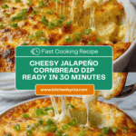 This 30-minute cheesy jalapeño cornbread dip is a crowd-pleaser that combines spicy, creamy, and cheesy flavors in every bite. Perfect for parties or casual snacking, it’s easy to make and disappears quickly from the table.