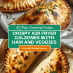 Air Fryer Calzones offer a quick and delicious way to enjoy this classic Italian favorite with less oil and a perfectly crispy crust. Packed with savory fillings like mozzarella, ham, turkey bacon, and fresh vegetables, these calzones are perfect for a satisfying meal or snack.