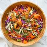 This Asian Crunch Salad with Ginger Dressing is a vibrant, nutritious meal prep option packed with colorful shredded vegetables, fresh herbs, and crunchy cashews, tossed in a zesty and slightly sweet lime ginger dressing. It’s perfect for a light lunch or a refreshing side dish, with an option to add shredded chicken for extra protein.