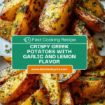 Keywords: Greek potatoes, baked potatoes, lemon garlic potatoes, Mediterranean side dish, oregano potatoes