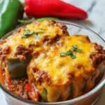 Baked Chili Rellenos combine roasted Anaheim or pasilla chilies stuffed with a flavorful blend of cheddar, Monterey Jack, and cotija cheeses, baked in a savory tomato and green chili sauce. This easy Mexican-inspired dish is perfect for a comforting meal topped with sour cream, cilantro, or avocado.
