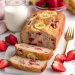 This Banana Strawberry Bread is a moist and flavorful loaf combining ripe bananas, fresh strawberries, and wholesome flours like oat and almond flour. Sweetened naturally with maple syrup and enriched with Greek yogurt, it makes a perfect wholesome snack or breakfast treat. The bread is baked to a tender crumb with fresh strawberry bursts in every bite.