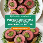 This Best Christmas Stuffed Beef Tenderloin recipe features a succulent, tender beef roast filled with a flavorful breadcrumb stuffing made with garlic, onion, butter, and fresh parsley. Perfectly seasoned and roasted to your preferred doneness, this elegant main dish is ideal for holiday celebrations and special occasions.