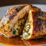 This Best Christmas Stuffed Turkey Breast recipe features a tender turkey breast rolled with a flavorful filling of cream cheese, spinach, crispy bacon, and aromatic herbs. Baked to juicy perfection and finished under the broiler for a beautiful golden crust, this elegant main dish is perfect for festive holiday dinners.