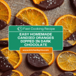 Candied oranges are a delightful treat that combines the bright, tangy flavor of fresh oranges with a sweet, glossy syrup. Finished with a rich dark chocolate dip and a touch of flaky salt, they make an elegant snack or garnish perfect for any occasion.