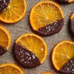 Candied oranges are a delightful treat that combines the bright, tangy flavor of fresh oranges with a sweet, glossy syrup. Finished with a rich dark chocolate dip and a touch of flaky salt, they make an elegant snack or garnish perfect for any occasion.
