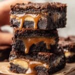 Keywords: caramel brownie bars, fudgy brownies, caramel cream dessert, chocolate caramel bars, cream cheese swirl brownies