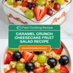 Keywords: cheesecake fruit salad, caramel crunch dessert, no bake cheesecake bites, fruit and cheesecake salad, easy summer dessert