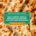Cheesy Garlic Breadsticks are a quick and delicious snack perfect for any occasion. With a crispy crust and a buttery garlic topping, they’re sure to satisfy your cravings in just minutes.