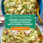 Keywords: chickpea avocado salad, creamy chickpea salad, Greek yogurt salad, healthy vegetarian salad, easy no-cook salad