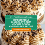 This Chocolate Chip Cookie Dough Cheesecake combines the best of both worlds: creamy cheesecake and edible cookie dough dotted with mini chocolate chips. It’s a decadent dessert perfect for celebrations or any time you want to indulge in something special.