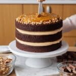 - For extra crunchy texture, sprinkle chopped peanuts between the cake layers along with the caramel.
