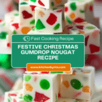 This Christmas Gumdrop Nougat is a festive and sweet treat perfect for the holiday season. Combining creamy white chocolate and marshmallows with colorful red and green gumdrops, it’s both delightful to look at and delicious to eat.