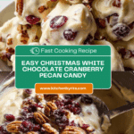 This festive Christmas White Chocolate Cranberry Pecan Candy combines creamy, sweet white chocolate with tangy dried cranberries and crunchy pecans for a delightful holiday treat that’s easy to make and perfect for gifting or sharing.