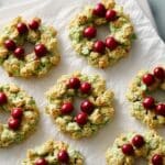 Keywords: Christmas wreath cookies, holiday cookies, marshmallow treats, cornflake cookies, no-bake dessert, festive cookies