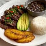 A flavorful and authentic Churrasco Skirt Steak recipe served with a zesty Chimichurri sauce. The skirt steak is marinated in a blend of aromatic spices and lime juice, then seared to perfection in a cast iron skillet for a deliciously juicy and tender finish. The accompanying chimichurri sauce, made with fresh herbs, garlic, and citrus, adds a vibrant, fresh kick to every bite.