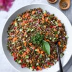 This vibrant lentil salad is a refreshing and nutritious dish packed with colorful bell peppers, fresh herbs, and a tangy tahini dressing. It’s perfect as a light lunch or a flavorful side that complements any meal.