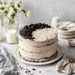 Keywords: Cookies and Cream Cake, Oreo Cake, Coffee Buttercream, Oreo Buttercream, Dessert Cake, Layer Cake