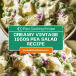 This Creamy 1950s Vintage Pea Salad is a nostalgic, delicious side dish featuring tender peas mixed with a tangy and sweet creamy dressing, cheddar cheese, fresh vegetables, and herbs. Perfect for potlucks, picnics, or a retro-inspired meal, it combines simple ingredients to create a flavorful and refreshing salad.