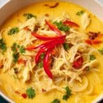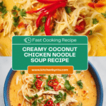 This creamy chicken noodle soup combines tender chicken, vibrant vegetables, and fragrant spices in a rich coconut milk broth. It’s a comforting and flavorful twist on classic chicken noodle soup, perfect for cozy nights or when you need a nourishing meal.