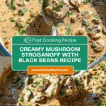 Keywords: Mushroom Stroganoff, vegetarian stroganoff, creamy mushroom sauce, black bean stroganoff, quick vegetarian dinner