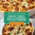 Keywords: turkey casserole, cheesy pasta bake, creamy casserole, comfort food, baked pasta with cheese and turkey