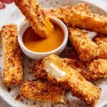 Crispy and flavorful Breaded Tofu Strips made by coating extra firm tofu in a cornstarch-soy sauce mixture, then breaded with seasoned breadcrumbs and nutritional yeast, pan-fried to golden perfection. Served with tangy BBQ sauce, this vegan-friendly dish is a perfect protein-packed snack or appetizer.