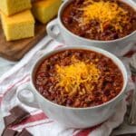 - Serve: After simmering, ladle the chili into bowls and garnish with your favorite toppings like shredded cheese, sour cream, chopped onions, or fresh cilantro, as desired. Enjoy!