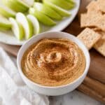 - Serve: Serve the chilled dip with an extra sprinkle of pumpkin pie spice on top. Pair it with apple slices, cinnamon sugar chips, or your preferred dippers such as grain-free churro strips for a delicious fall treat.
