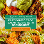 Keywords: Dorito Taco Salad, taco salad recipe, ground beef salad, Doritos recipe, easy taco salad, Catalina dressing salad