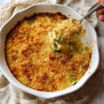 It’s best to use fresh zucchini for this recipe because frozen zucchini can release excess water and make the casserole watery. If you must use frozen, be sure to thaw and squeeze out as much moisture as possible before using.