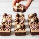 This Easy Peppermint Mocha Fudge recipe layers a rich chocolate fudge infused with peppermint extract and a smooth coffee fudge flavored with espresso. Topped with melted chocolate, chocolate-covered espresso beans, and crushed candy canes, this festive treat combines the flavors of mocha and peppermint in a delightfully creamy fudge perfect for holiday gifting or indulgent snacking.