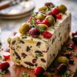 This Festive Holiday Antipasto Cream Cheese Log is a flavorful and visually appealing appetizer perfect for holiday gatherings. It combines creamy cream cheese with sun-dried tomatoes, olives, roasted red peppers, salami, and Parmesan cheese, seasoned with Italian herbs and spices. Rolled into a log and chilled, then garnished with fresh herbs and crunchy nuts, this no-cook dish is easy to prepare and sure to impress your guests.