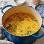 - Garnish and serve: Remove from heat and garnish the soup generously with fresh dill. Optionally, serve with lemon wedges and crusty bread on the side to complement the creamy broth.