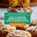 These Flourless Pumpkin Muffins are a wholesome, gluten-free treat made with pumpkin puree, almond butter, and warm spices. Naturally sweetened with honey or maple syrup and optionally studded with mini chocolate chips, they’re perfect for a cozy breakfast or snack without any flour or refined sugars.
