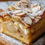 Keywords: French apple cake, invisible apple cake, thin apple slices dessert, French dessert, baked apple cake, layered apple cake, almond topping cake