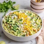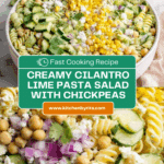 A fresh and healthy cilantro lime pasta salad that is super creamy and bursting with vibrant flavors. Featuring a homemade Greek yogurt avocado dressing, this salad combines tender pasta, chickpeas, crunchy cucumber, sweet corn, and tangy feta cheese for a nutritious and satisfying meal or side dish.