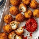 - Drain and serve: Use a slotted spoon to remove the balls and place them on a paper towel-lined plate to drain excess oil. Serve immediately with the warm spicy marinara dipping sauce for a perfect appetizer experience.
