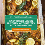 This Greek Lemon Chicken with Potatoes is a flavorful and tender roasted chicken dish marinated in a zesty lemon, garlic, rosemary, honey, and mustard blend. Paired with perfectly seasoned roasted potatoes, it offers a classic Mediterranean meal that is both comforting and aromatic, ideal for a family dinner or entertaining guests.
