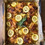 Keywords: Greek Lemon Chicken, Roasted Chicken, Greek Chicken with Potatoes, Mediterranean chicken recipe, Lemon garlic chicken, One dish chicken dinner