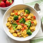 A nutritious and colorful healthy veggie egg scramble packed with fresh broccoli, mushrooms, red and orange peppers, and spinach, lightly seasoned and cooked to fluffy perfection. This easy-to-make breakfast is vibrant, protein-rich, and perfect for starting your day on a wholesome note.