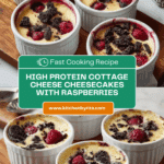 Delicious high-protein cottage cheese cheesecakes that are smooth, creamy, and lightly sweetened. These individual cheesecakes are topped with crunchy Oreo cookies and fresh raspberries, making a perfect low-sugar dessert option rich in protein and flavor.