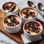 - Bake the cheesecakes: Place the baking dishes on a baking tray and bake in the preheated oven for 20–25 minutes, or until the centers are set but still slightly jiggly. The tops should turn lightly golden but not browned.