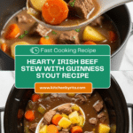 Keywords: Irish beef stew, Guinness stout stew, slow cooker beef stew, hearty Irish recipe, comfort food, root vegetable stew