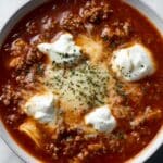 Keywords: lasagna soup, easy soup recipe, Italian soup, hearty soup, comfort food, ground beef soup, cheesy soup