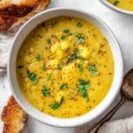 Keywords: lentil soup, potato soup, vegan soup, easy soup recipe, healthy soup, red lentils, Indian spices, coconut milk soup
