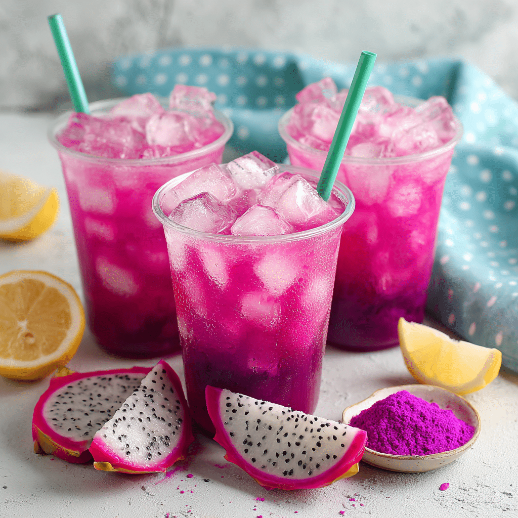 - Mix Ingredients: In a blender, combine the lemonade, dragon fruit mango juice, and freeze-dried dragon fruit powder.