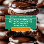 These Marshmallow-Surprise Hot Cocoa Cookies are a delightful twist on classic chocolate cookies, infused with rich cocoa and hot cocoa mix, topped with toasted marshmallows and drizzled with melted semi-sweet chocolate. Soft, chewy, and indulgently sweet, they bring all the cozy warmth of hot cocoa in cookie form, perfect for winter treats or gifting.