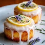 - Glaze and garnish: Drizzle the cooled lemon cakes with the lavender glaze. Garnish with additional lemon zest and edible flowers as desired for an elegant presentation.